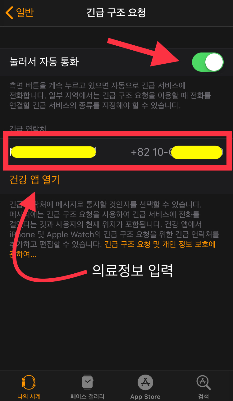 긴급 구조 요청을 활성화 시켰으면, 혹시 모를 상황을 위해서 추가 정보를 입력합니다.